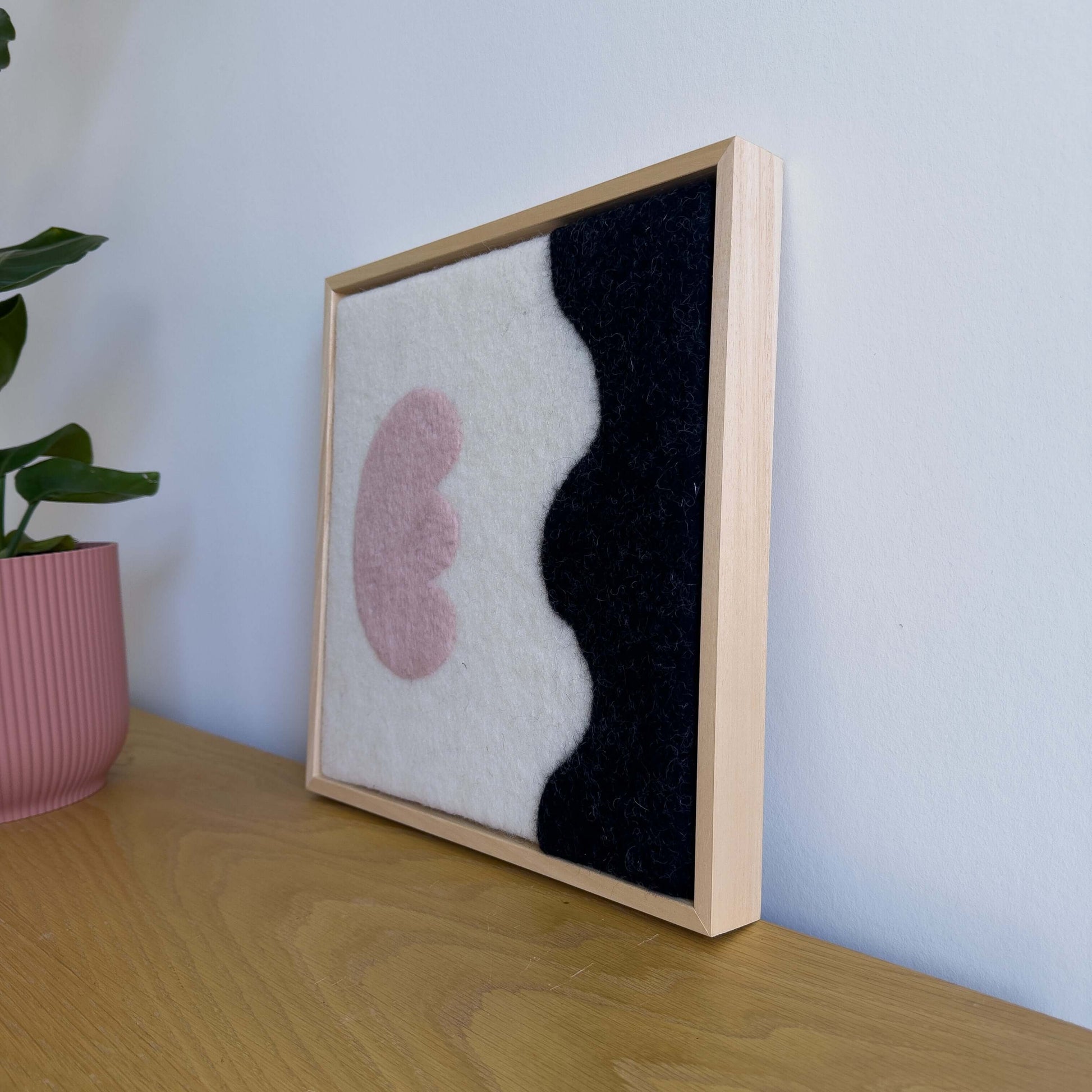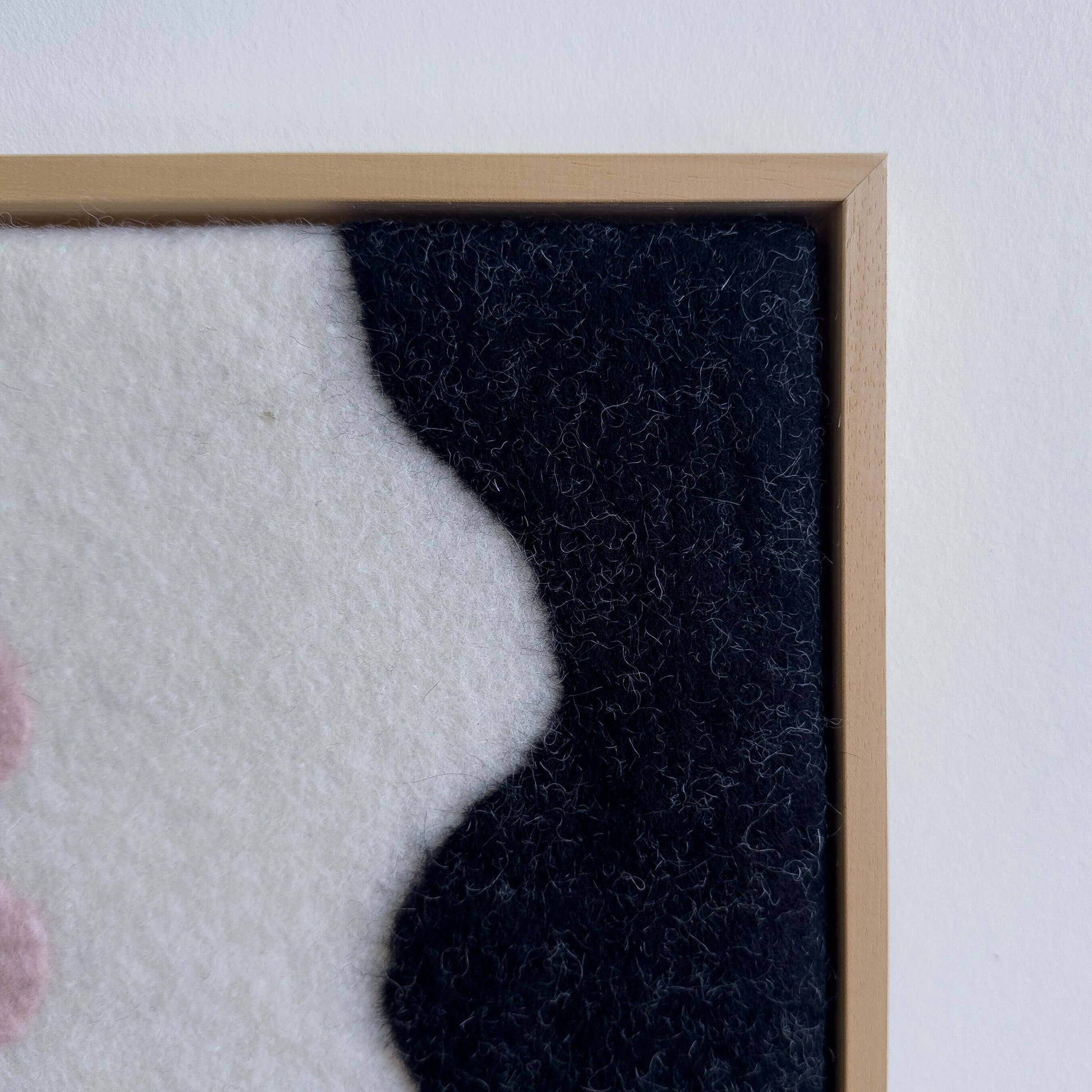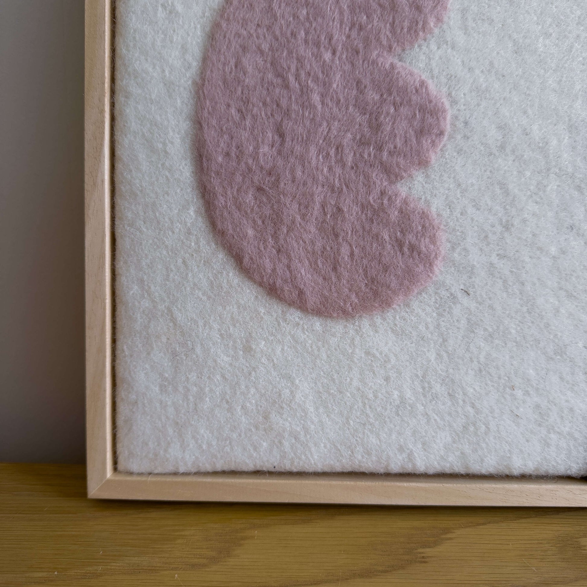 Handgemaakt schilderij van wol uit onze serie Flowers. Vrolijke felle kleuren en geïnspireerd op de prachtige vormen van bloemen. Past in ieder interieur. Onze wanddecoratie wordt standaard geleverd met op maat gemaakte baklijst.